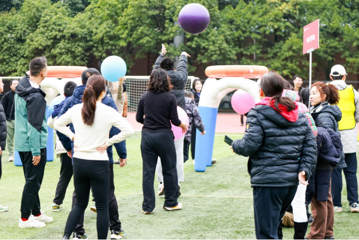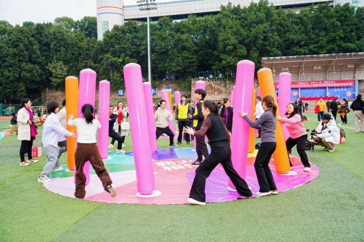 抽奖结束后,游园活动和趣味运动会正式拉开帷幕。游园活动设置了急速投篮、幸运套圈、滚铁环、投壶、九宫射门五项个人项目,教职工们积极参与其中,尽情享受运动的乐趣。趣味运动会由各二级工会分别组成比赛队,各参赛队轮流参加欢乐龙舟、贴字接力、两分钟不倒森林、两分钟巧传呼啦圈、两分钟投篮接力赛五个项目。