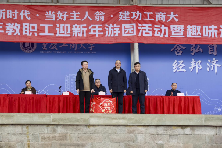 12月26日下午,由校工会主办的“立足新时代·当好主人翁·建功工商大”2025年教职工迎新年游园活动暨趣味运动会在南岸校区热烈举行。学校党委书记曾维伦,校长温涛,党委常委、副校长任毅、杨柏、田双全,党委常委、组织部部长莫征,党委常委、宣传部部长杨维东和2000余名教职工欢聚一堂,共迎新年。活动由任毅主持。