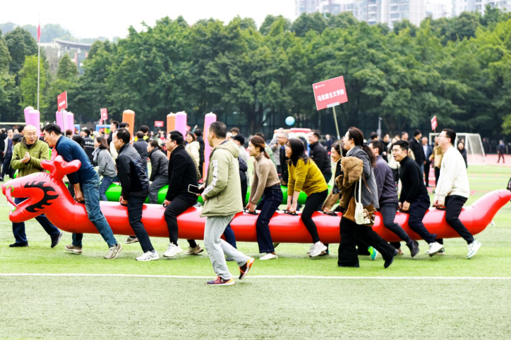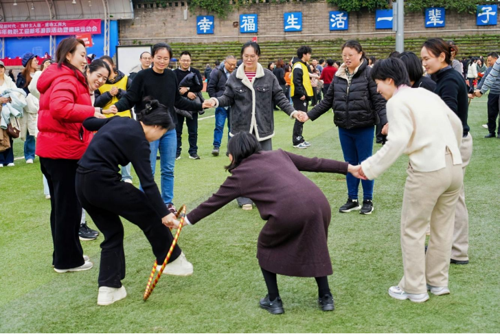 运动场上五彩缤纷,欢声如潮。热烈的加油声、整齐的呐喊声与爽朗的欢笑声交织在一起。冬日的暖阳映照着每一张洋溢着笑容的脸庞,大家在运动中释放活力,在游戏中增进情谊,现场处处弥漫着喜迎新年的欢乐气息。