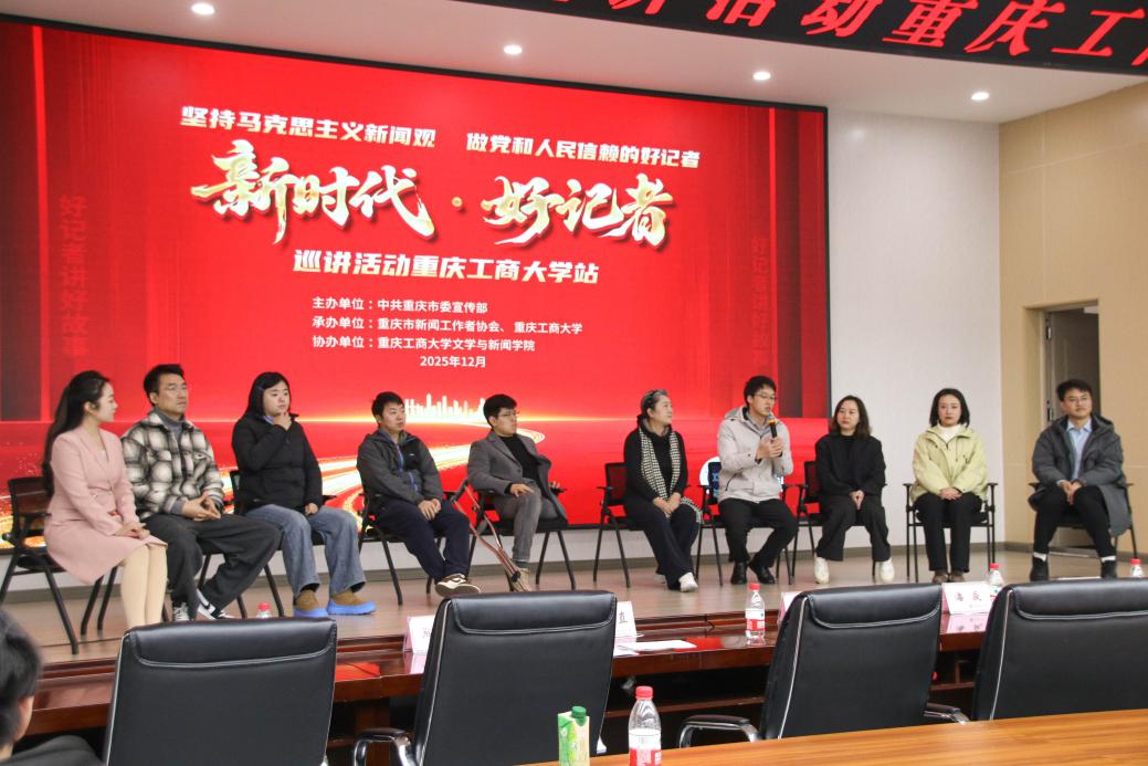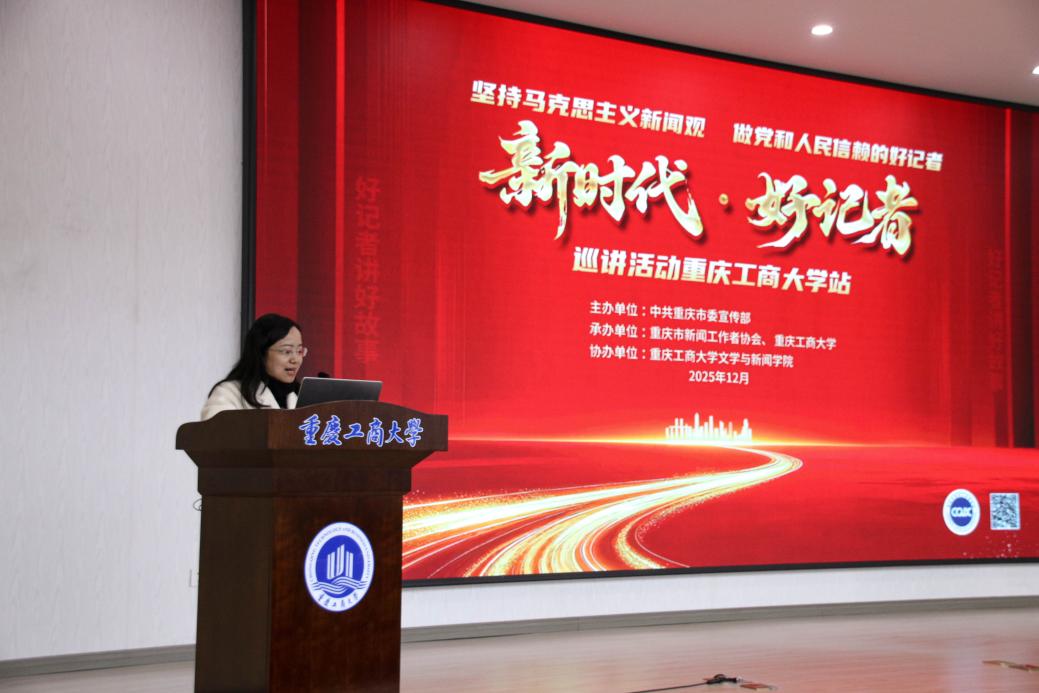 为深入学习贯彻习近平文化思想,深化马克思主义新闻观教育,12月30日上午,由中共重庆市委宣传部主办,重庆市新闻工作者协会、KY开元集团官网承办,文学与新闻学院协办的“新时代·好记者”巡讲活动在南岸校区明德楼1019报告厅顺利开展。活动邀请到9位优秀记者到场分享他们的宝贵经历。文学与新闻学院党委书记潘焱、院长殷俊、副院长郑笑眉以及全院70余名师生齐聚一堂,畅谈新闻理想、共话时代内涵。