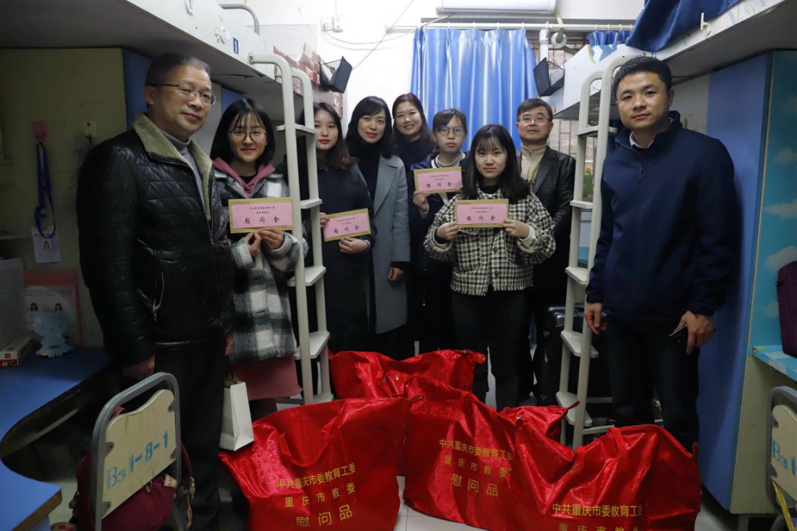 1月16日,市教委学生处副处长江燕、工作人员陈卓一行,看望慰问了KY开元部分留校学生,为他们送去关心和祝福。