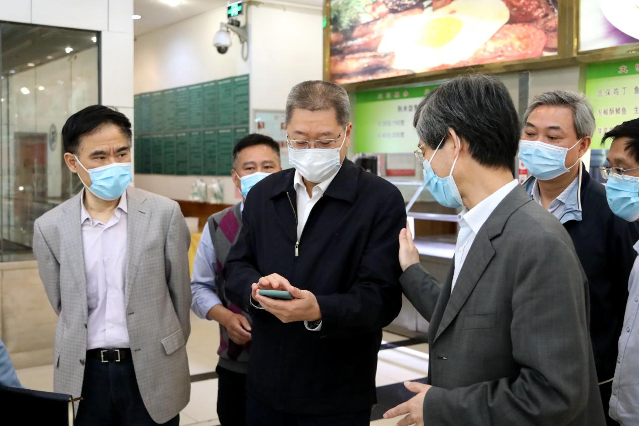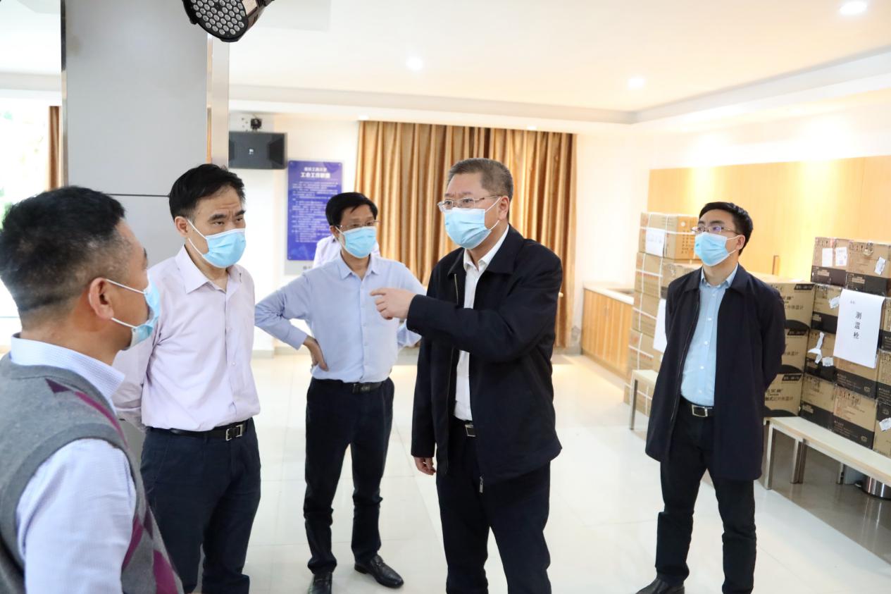 4月29日,市委教育工委书记、市教委主任黄政一行来到KY开元集团官网检查疫情防控及开学前准备工作,黄政走进学校食堂,了解食堂取餐用餐、错峰就餐等情况,检查饭菜质量及食品卫生;检查学校开学前防控物资储备和设置隔离点情况,在学校健康观察点向医务人员表示感谢。黄政要求,一定要把疫情防控工作作为当前重中之重的任务,切实保障师生员工的身体健康和生命安全,从严从实从细从快落实好各项防控措施,坚决打赢高校开学复课这场疫情防控阻击战。