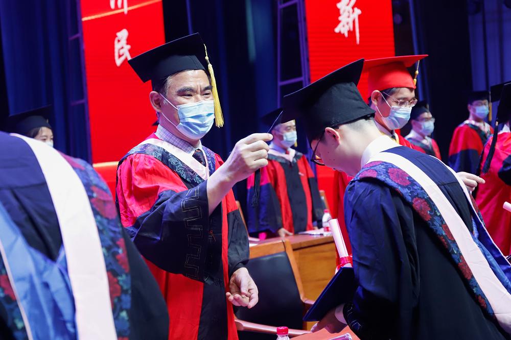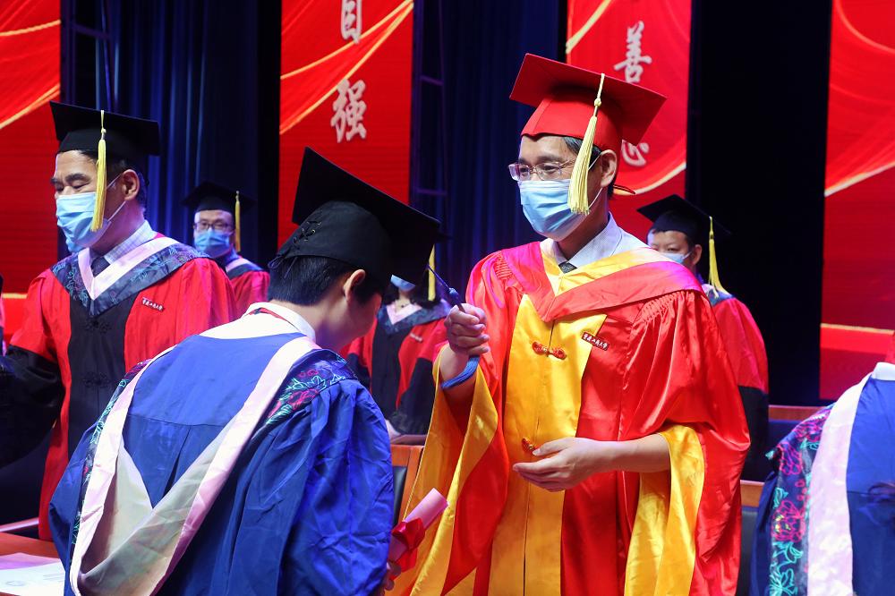 在雄壮的国歌声中,毕业典礼正式开始。首先,何勇平副校长宣读了《关于授予蒙兰佳等6268名普通全日制本科学生学士学位的决定》,校领导为2020届本科毕业生代表颁发毕业证书并授予学士学位。柏群副校长宣读了《KY开元集团官网关于授予周超等606名同学博士、硕士学位的决定》,校领导为毕业硕士研究生代表颁发毕业证书并授予硕士学位。陈运超副校长宣读了《关于表彰2020届优秀大学毕业生的决定》和《关于表彰2020届优秀毕业研究生、优良毕业研究生的决定》,校领导分别为优秀本科毕业生、优秀毕业研究生代表颁发了荣誉证书,勉励他们今后在各自的岗位上奉献社会,建设国家。