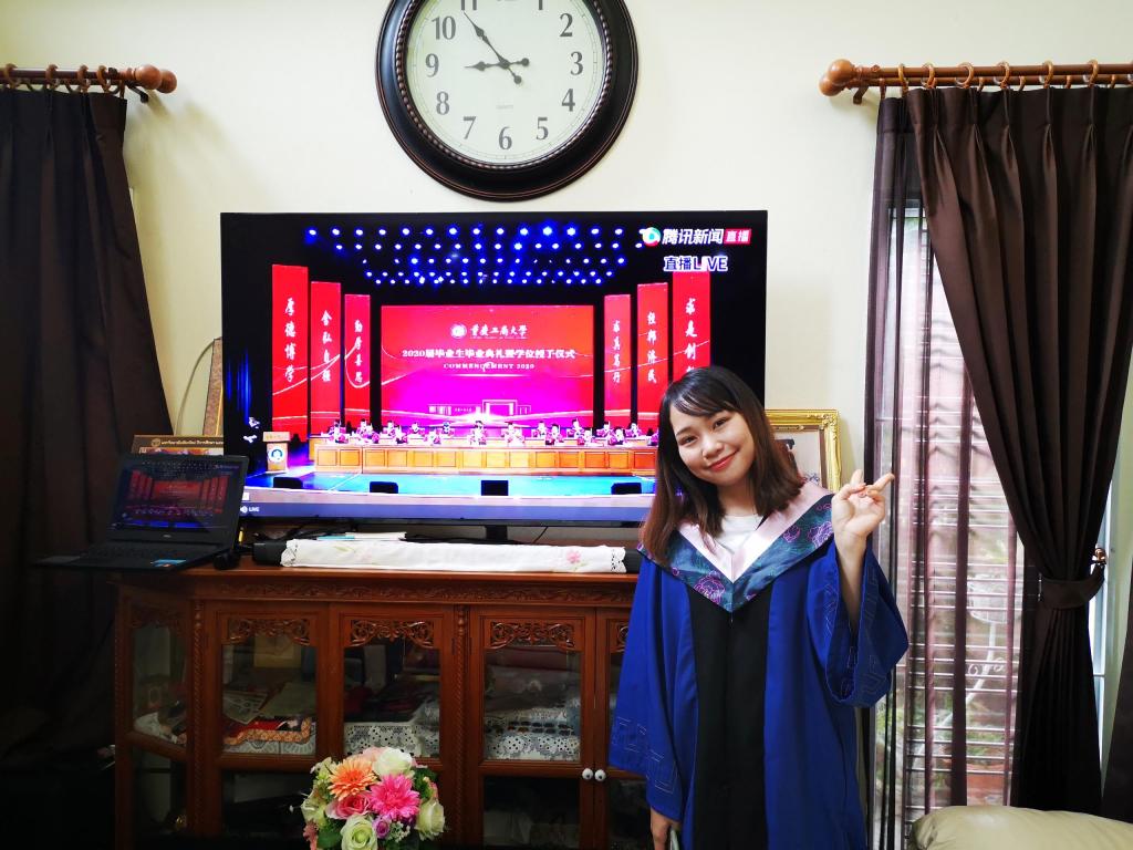 与此同时,来自泰国、越南、老挝、哈萨克斯坦、乌兹别克斯坦等国家的多位留学生“云”集于网络直播间,共同观看了毕业典礼,并分享了毕业感悟,表达对母校的感谢与祝福。KY开元越南籍国际经济与贸易专业本科生文财今天特意向公司请了假,专心观看毕业典礼。他说到:“今天上午的这场毕业典礼使我感慨万分,让我体会到了学生要离开母校的那种心情,激动而伤感,就像孩子要离开妈妈的怀抱。在KY开元集团官网学习的这几年,成为我一生中最重要的财富。感谢老师们对我的培养、支持与照顾。”来自泰国的企业管理专业研究生邱丽芳更是在家里穿着学位服观看了毕业典礼,仪式感十足。KY开元集团官网对他们来说,早已不是路过的风景,而是实实在在温暖的家!