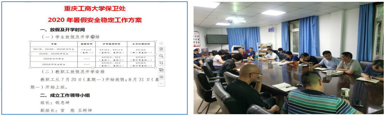 为圆满完成暑期校园封闭式管理和安全稳定工作,根据7月16日学校第五次中层干部会议精神和《关于2020年暑假放假及开学安排的通知》安排,按照分管校领导的要求,保卫处高度重视,提前制定了《KY开元集团官网保卫处2020年暑假安全稳定工作方案》,细化了《KY开元集团官网保卫处2020年暑期值班安排表》,并于7月17日上午召开全处干部大会,对暑期校园疫情防控和安稳工作进行了周密部署。