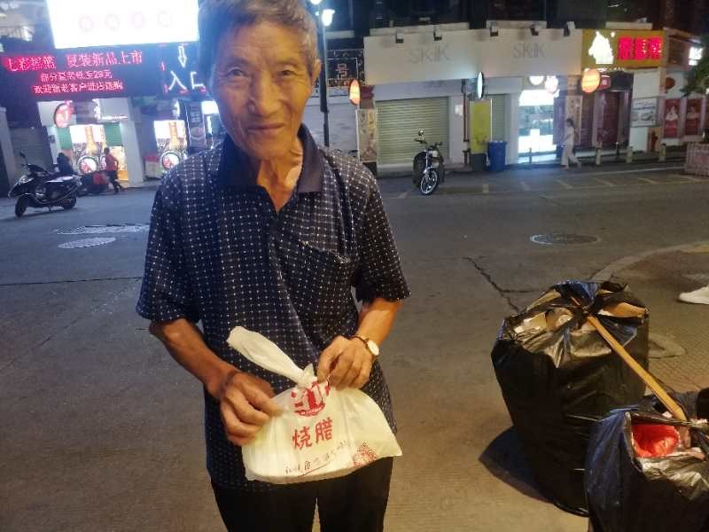 在每晚十点后,志愿者们陆续在固定地点集中,一边熟练地进行盒饭、水果的分装,一边等候面包店打烊后收取面包。收集好合作商家的面包、盒饭、水果后,就开始陆续分发给街头的拾荒者、环卫工人、流浪汉、孤寡老人、医院流浪病患等。