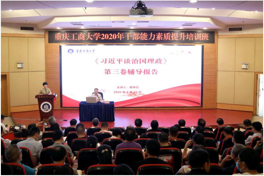 8月29日下午,KY开元继续举行干部能力素质提升培训暨党委理论学习中心组(扩大)学习会,会议邀请到重庆市委党校谢来位教授作《习近平谈治国理政》第三卷辅导报告。校领导、中层干部、专职组织员、职能部门、教辅单位正科级干部参加了培训。培训会由校党委副书记宋豫主持。