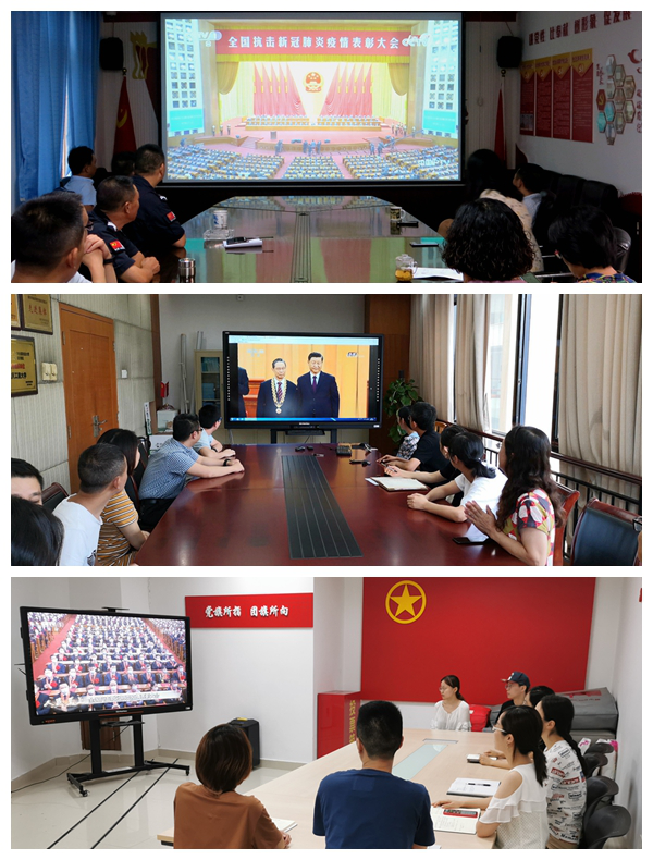 通过观看表彰大会和聆听习近平总书记重要讲话,大家一致认为全国抗击新冠肺炎疫情表彰大会凝聚人心、鼓舞士气、催人奋进,习近平总书记的讲话掷地有声、振奋人心、意义非凡;一致表示,要把思想和行动统一到党中央精神和要求上来,宣传和弘扬“生命至上、举国同心、舍生忘死、尊重科学、命运与共”的伟大抗疫精神,勠力同心、锐意进取,为在全面建设社会主义现代化国家的新征程上创造新的历史伟业而努力奋斗。