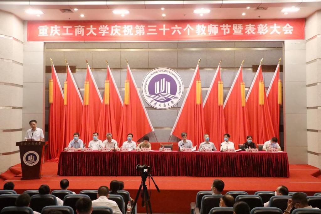 党委书记李志雄作了讲话,他代表学校党委向各类获奖者、为建校68年来所有志同道合,为党育人、为国育才的重工商大老领导、老教师和广大教职工致以节日的美好祝福和崇高敬意。他指出,面对疫情大考及其带来的变局,全校师生秉持“课堂就是一线”的理念:广大教师坚守立德树人的初心使命,坚持“课比天大”,共同实现了学校有史以来最高质量、最大规模在线教育,成功实现了一场意义深远的在线教学变革;广大师生始终保持对教与学的热爱,同心同向同行,留下了许多春风化雨的感人故事和清新育人的美丽身影;广大教职工合力共克时艰强发展,弘扬“生命至上、举国同心、舍生忘死、尊重科学、命运与共”的伟大抗疫精神,取得了疫情防控、干部集中调整、机构重组、博士授权单位申请报告修订、科学城、新校区建设、科研项目立项、毕业生就业等可喜可贺的好成绩。在斩灭疫情“黑天鹅”,打败疫情“灰犀牛”的同时,于变局中开新局,用心用情奏响了教书育人的精彩乐章。李志雄结合KY开元建设具有鲜明财经特色的全国知名高水平多科性大学宏伟目标的题中之义,以“一流大学:于变局中开新局”为题,分析了一流本科教育、一流师资队伍建设、一流管理服务如何应于变局中开新局。他指出,实践证明,只要善于从眼前的危机、眼前的困难中捕捉和创造机遇,再大的危机中也孕育着新机,再多的变局中也可以开启新局。他希望广大师生携手奋进,砥砺前行,共同奏响教书育人的精彩乐章。