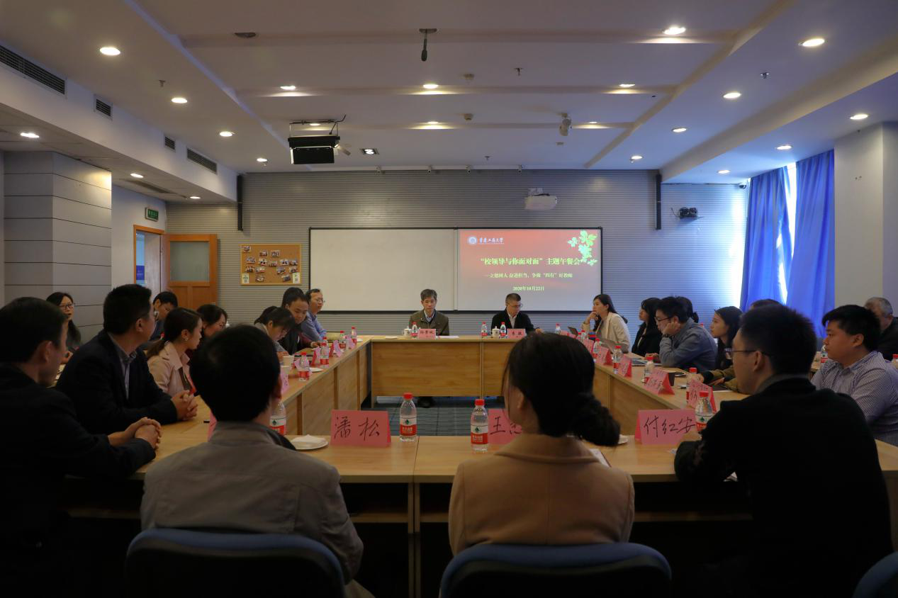为进一步加强青年教师队伍建设,促进青年教师成长,10月22日上午,以“立德树人,奋进担当,争做四有好教师”为主题的第21期“校领导与你面对面”主题午餐会在启智楼80412C会议室召开。校长孙芳城、副校长李敬,以及相关职能部门负责人和19位青年教师代表参加了会议。会议由李敬主持。