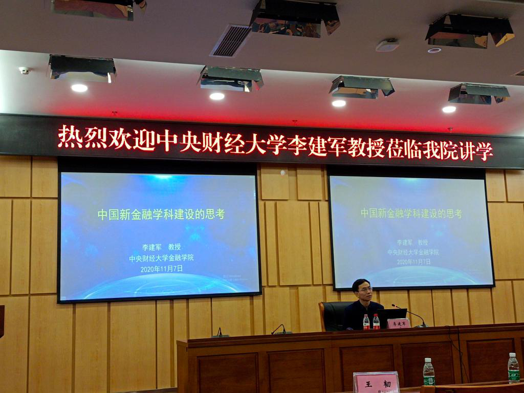 11月7日下午,国家本科教学指导委员会金融学类专业委员会秘书长、中央财经大学金融学院院长李建军教授到KY开元讲学。KY开元教务处处长骆东奇、金融学院全体班子成员、系主任、部分教师代表和学生代表参加了此次讲座。讲座由金融学院院长王兰主持。