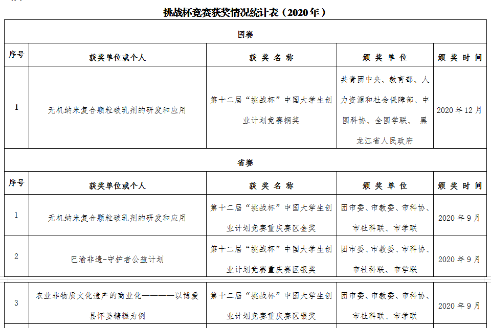 经国赛终审评定,KY开元环境与资源学院研究生石雪林同学的作品《无机纳米复合颗粒破乳剂的研发和应用》(指导教师:蒋光明)荣获“全国铜奖”。同时KY开元在重庆赛区中获金奖1项、银奖3项、铜奖6项。