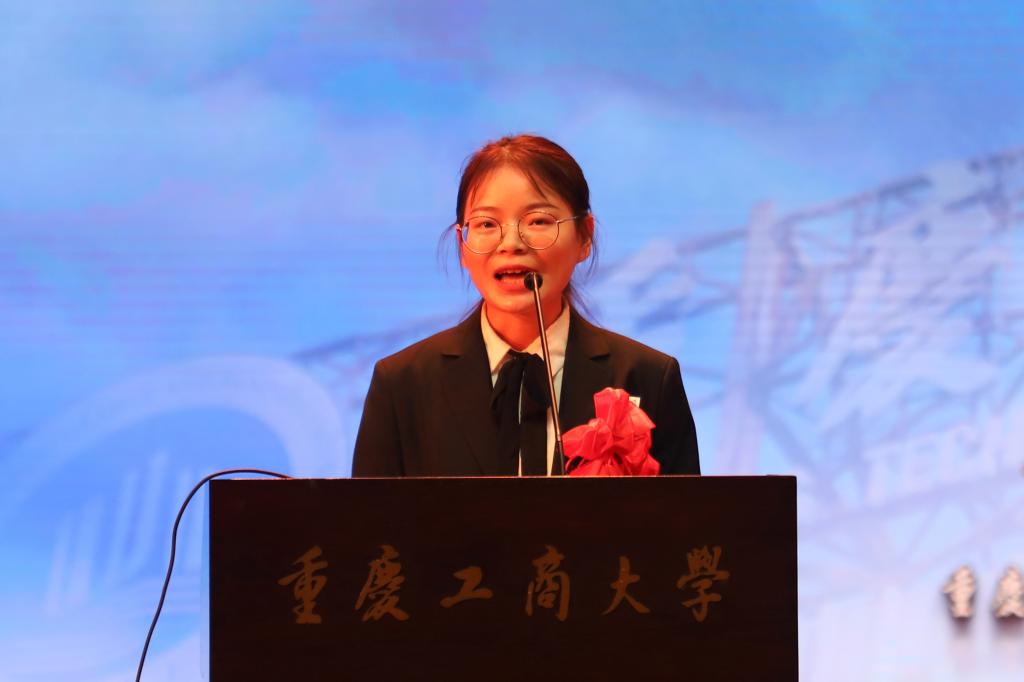 获奖学生代表机械学院阮世会、获奖辅导员代表文学与新闻学院肖婷先后进行了发言。