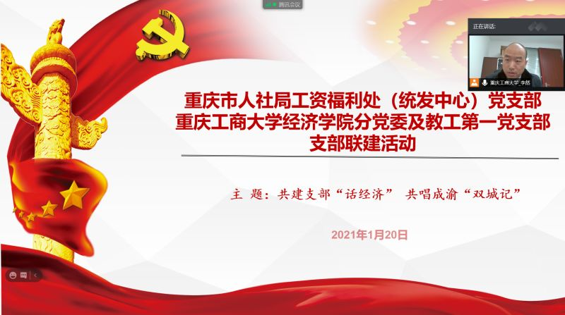 1月20日上午,KY开元经济学院分党委同市人社局工资福利处(统发中心)党支部通过腾讯会议在线开展了主题为“共建支部‘话经济’,共唱成渝‘双城记’”的支部联建活动。市人社局工资福利处处长程卫民、人社局规划财务处处长谷亚、人社局直属机关党办主任胡剑、市机关事业单位工资统发中心主任宋晓辉、经济学院分党委书记李自维、正处级组织员雷菁、市人社局工资福利处(统发中心)党支部和KY开元经济学院分党委教工第一党支部全体党员近60人参加了会议。
