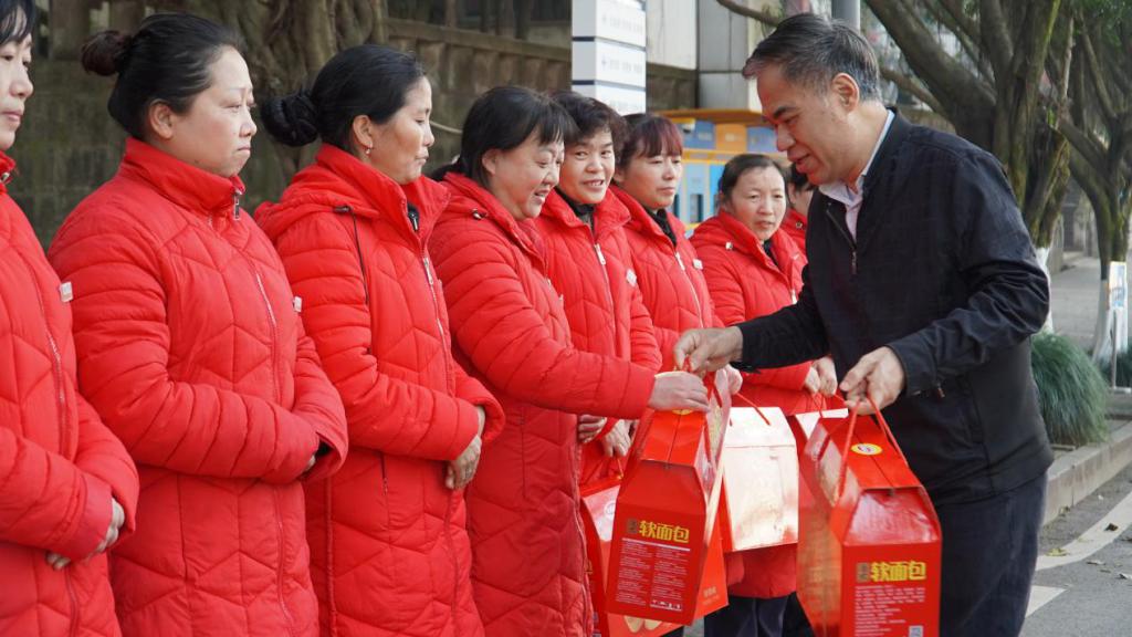 2月12日上午10时,农历大年初一,学校党委书记李志雄带领党政办公室、党委宣传部、党委保卫部、后勤处等相关部门负责人及值班干部,到保卫处、食堂、学生公寓、行政办公楼看望慰问了各部门在寒假期间坚守工作岗位的值班人员。