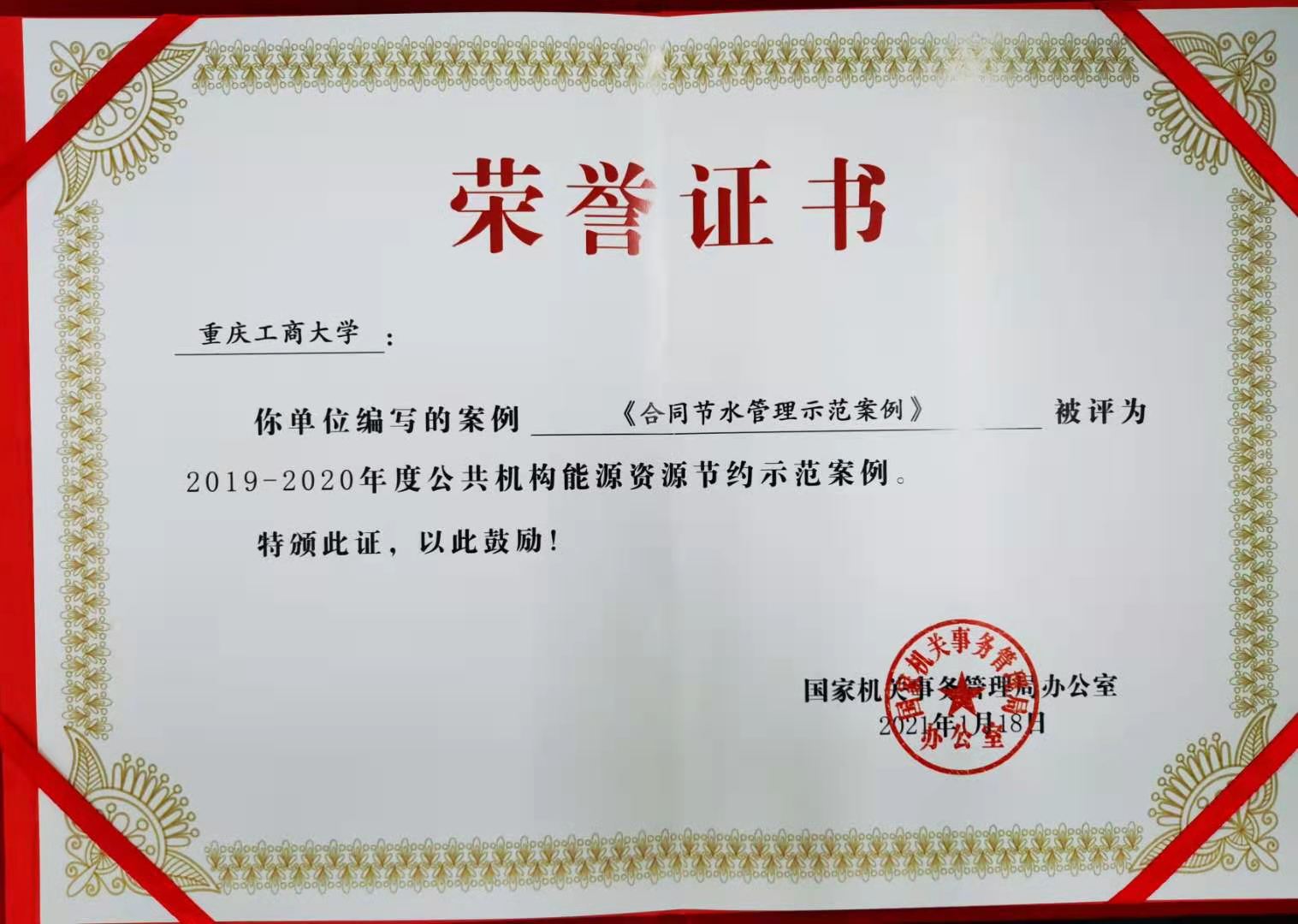 2021年1月18月,国家机关事务管理局发布《国管局办公室关于发布2019-2020年度公共机构能源资源节约示范案例的通知》(国管办发〔2021〕1号),KY开元编写的案例《合同节水管理示范案例》被评为2019-2020年度公共机构能源资源节约示范案例。