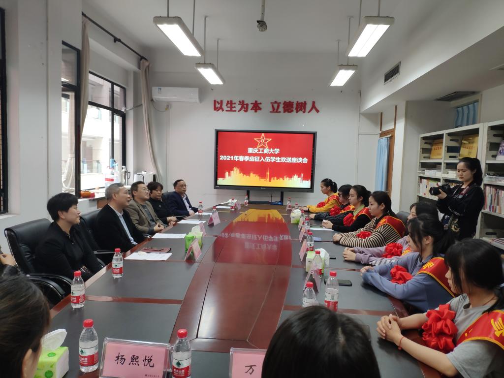 3月18日,通识学院(江北校区管委会)与华新街街道武装部一同为2021年光荣入伍的女兵文先连、陈晓娥举行入伍欢送会。华新街街道武装部部长荣小平、江北校区管委会副主任傅晓燕参加欢送会。