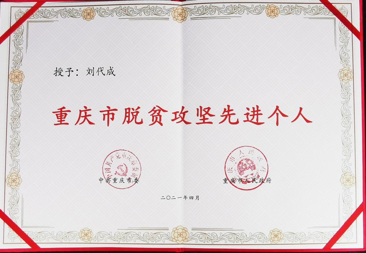 刘代成同志作为学校派出的扶贫干部,在工作中敢于开拓创新、真抓实干。该同志通过抓党建促脱贫,扎实开展“志智双扶”,切实推行“八查八到位”措施,“两不愁三保障”突出问题全部解决;采取“走出去、请进来”方式推动消费扶贫,参与策划的“彭水生态农产品展销窗口”“玉山村赶场”直播带货等活动受到中国网、重庆城乡统筹网、彭水日报等多家媒体报道;“光明玉山”太阳能路灯工程受到村民广泛好评。