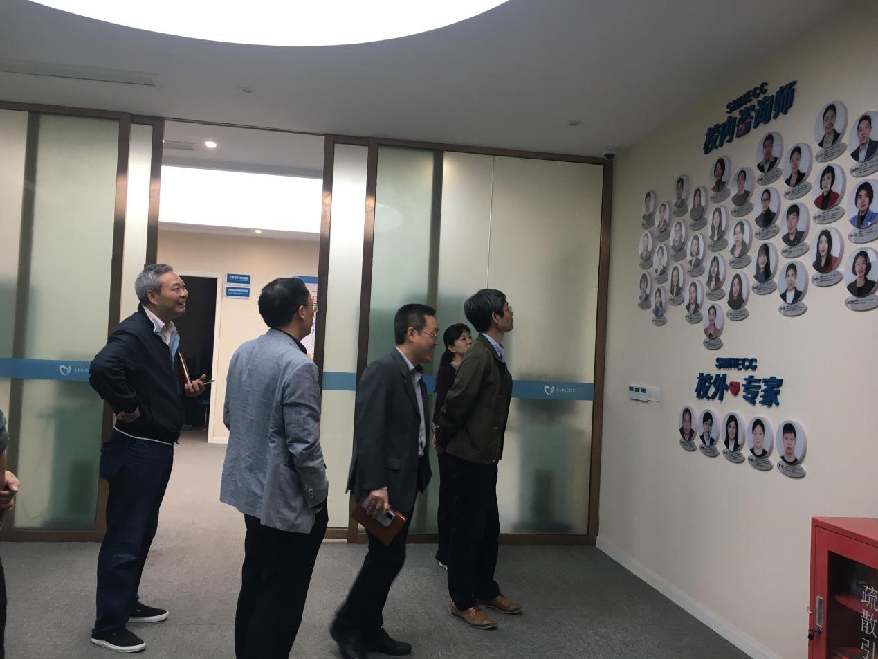孙芳城、李国军先后参观了心理咨询室、沙盘室、测量室及团体辅导室,并对心理中心日常工作展开情况、心理健康教育活动举办情况及活动成效进行了详细了解。