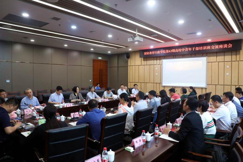 6月2日上午,国家教育行政学院第63期高校中青年干部培训班调研座谈会在KY开元图书馆会议中心五会议室举行。国家教育行政学院带队教师石连海、马丽红,考察团团长杨羽、副团长李文军和相关成员共31人参加了座谈会。KY开元校长孙芳城,副校长赵骅及相关职能部门负责人参加会议。会议由党委常委、党委组织部部长郑夕春主持。