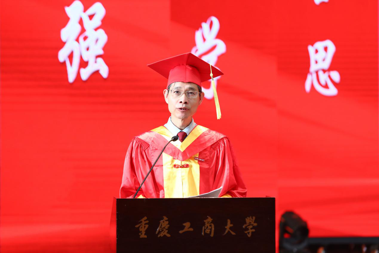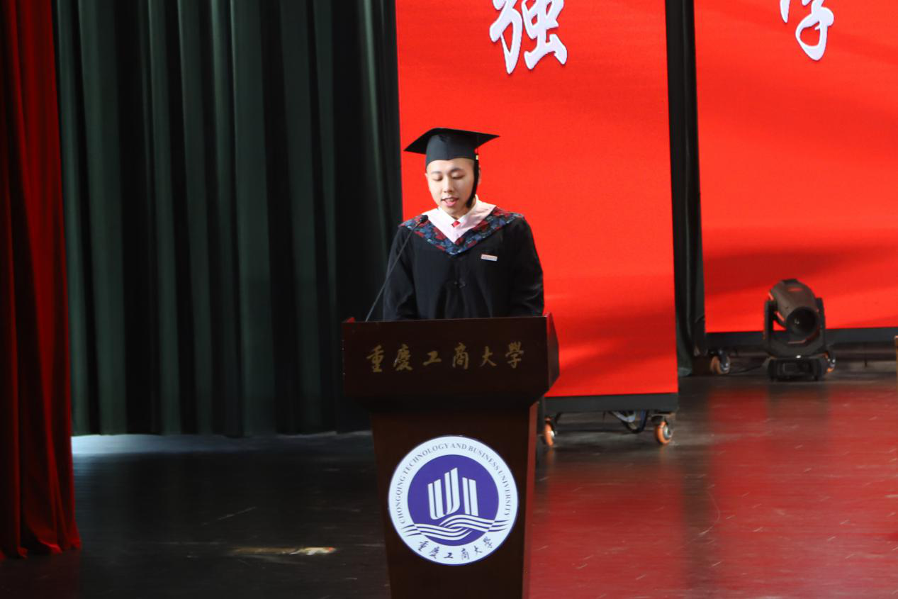良辰美景匆匆,转眼毕业已至。离别之际,总有感触良多。毕业生本科生代表王峻来、毕业生研究生代表高静同学分别作了发言。他们表达了对父母养育之恩、师长倾囊相授、同窗陪伴支持的感恩之情,同时也祝学校70岁生日快乐,并表示他们将带着母校希冀和嘱托,用激情和勤奋实现自己的人生理想,用成长、成才继续述说重工商大人的精彩。
