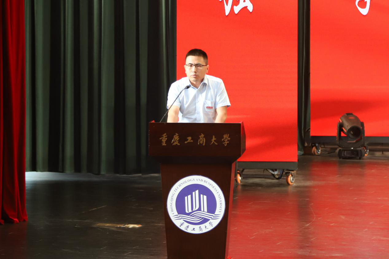 机械工程学院杜彦斌老师代表全体教师发言,他表达了对毕业生们殷切的希望,希望毕业生们走好今后人生的每一步,为自己的人生打好坚实的基础,在更加广阔的天地中展现工商学子的家国情怀和浩然正气。
