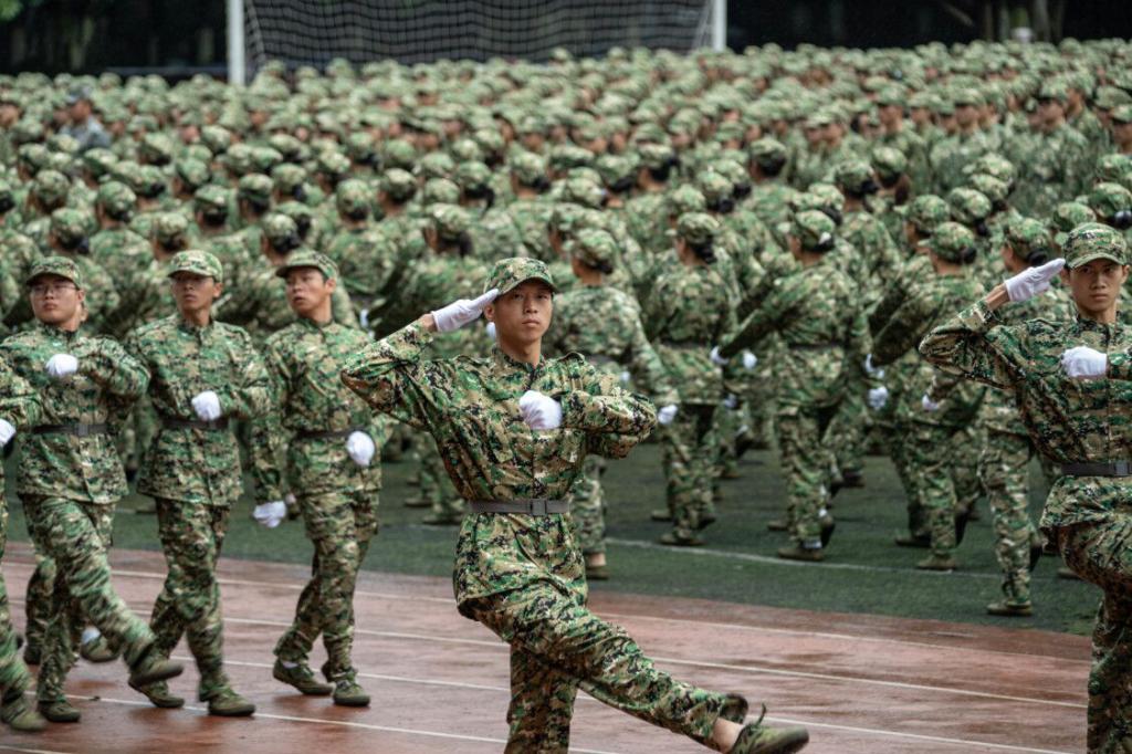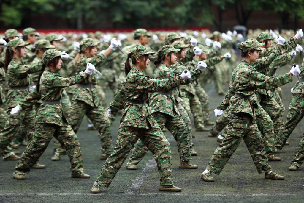 大会开始前,指挥员带领全体参训师生齐唱《强军战歌》。在庄严的国歌声中,鲜艳的五星红旗缓缓升起,大会正式拉开序幕。孙芳城在阅兵总指挥的陪同下对各军训方阵进行了检阅。在同学们自信洪亮的口号声中,军训汇报表演正式开始。