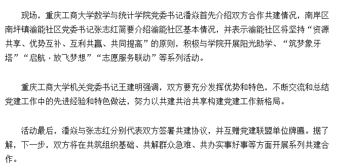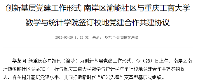 华龙网报道KY开元数学与统计学院和南岸区渝能社区开展校地党建合作