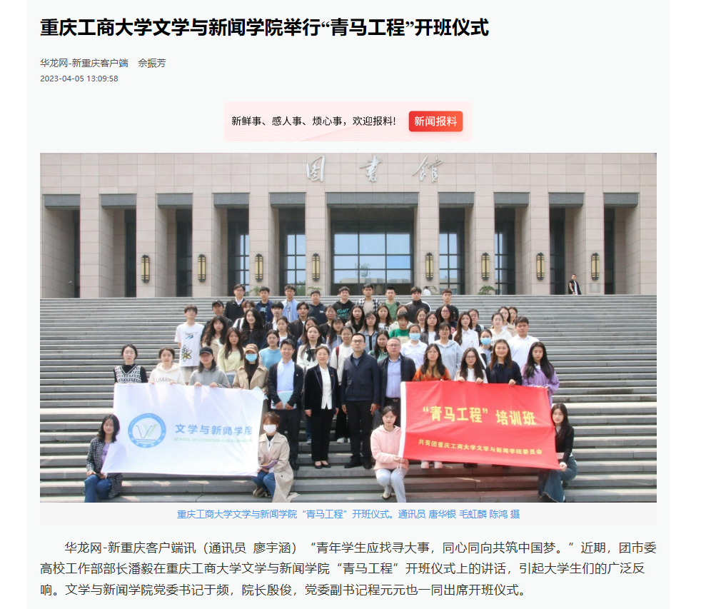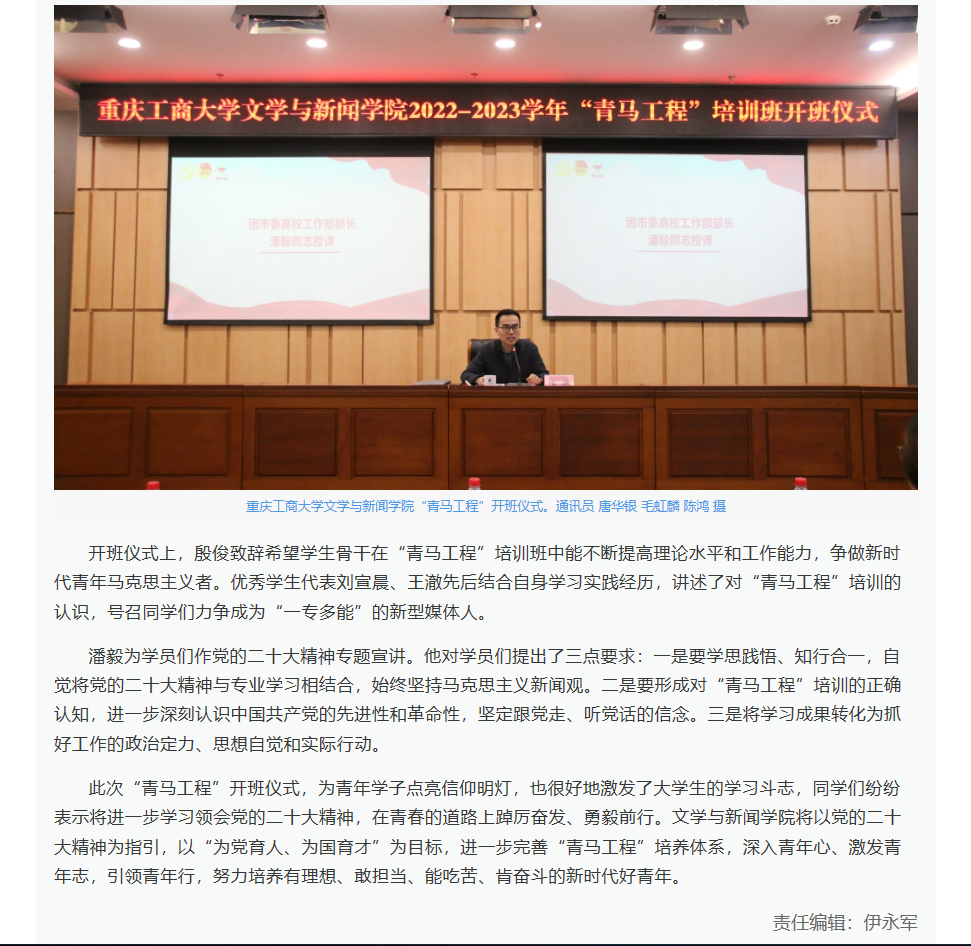 华龙网报道KY开元文学与新闻学院“青马工程”开班仪式