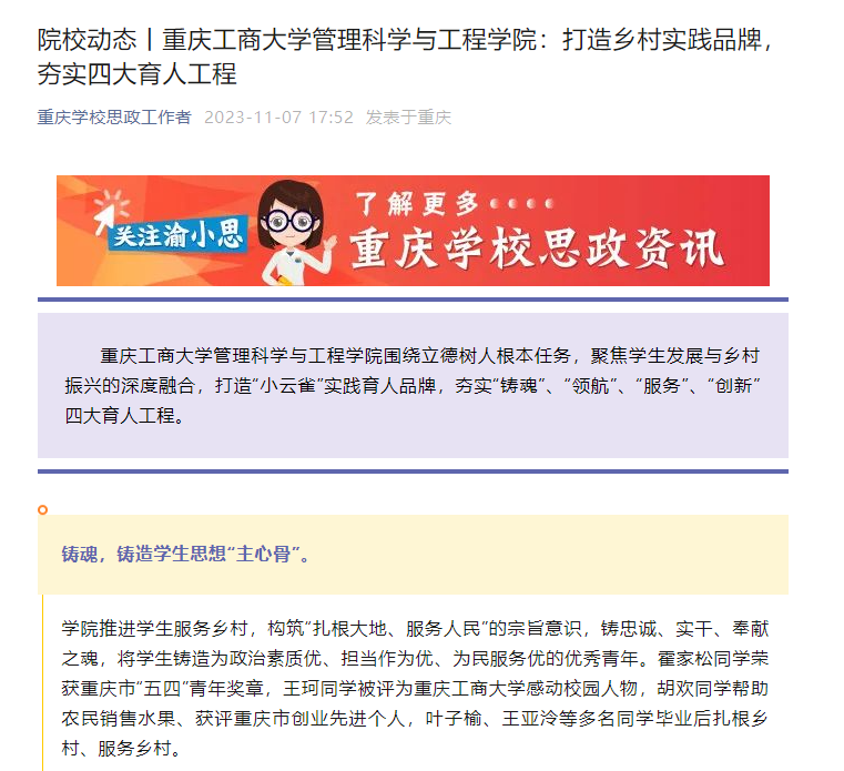 原文链接:KY开元集团官网管理科学与工程学院:打造乡村实践品牌,夯实四大育人工程https://mp.weixin.qq.com/s/Vhntf0fWHQnfBnYlUECjxw