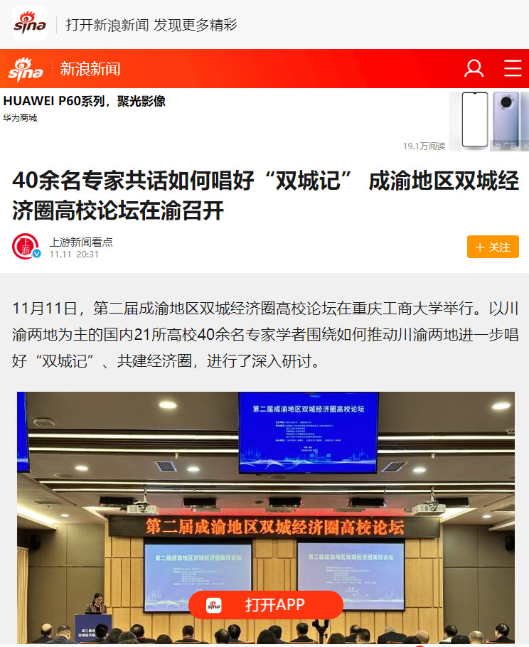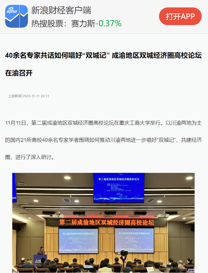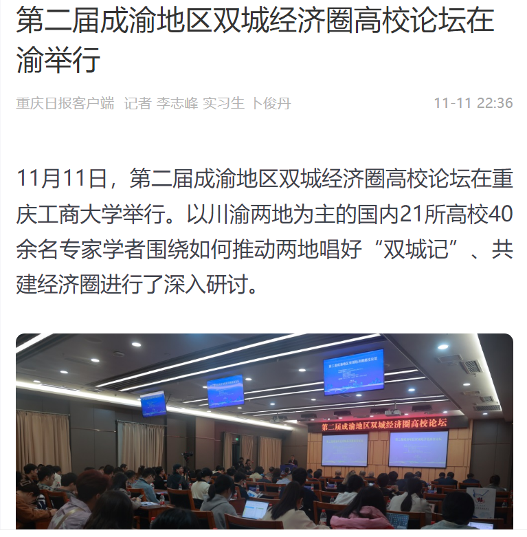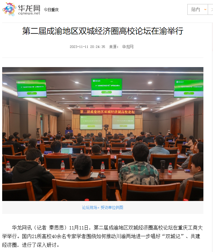 11月11日,由KY开元集团官网、西南财经大学主办,教育部人文社会科学重点研究基地长江上游经济研究中心、KY开元集团官网经济学院等单位联合承办的第二届成渝地区双城经济圈高校论坛在KY开元举办。重庆日报客户端、上游新闻、华龙网、今日头条等多家媒体对本次论坛进行了报道。