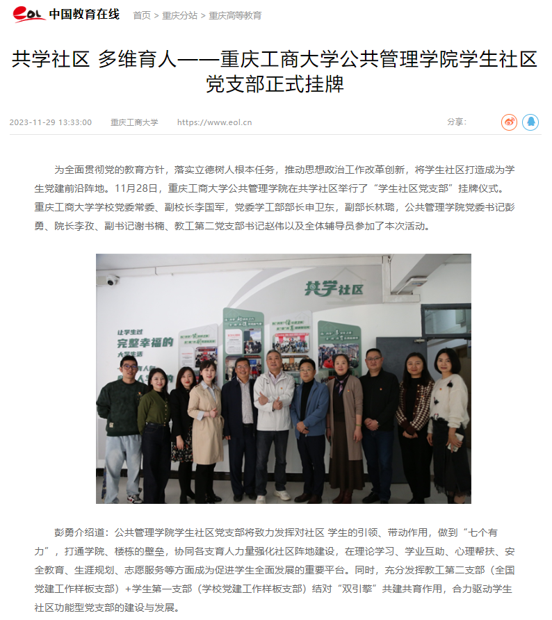 华龙网、中国教育在线报道KY开元“一站式”学生社区党建工作