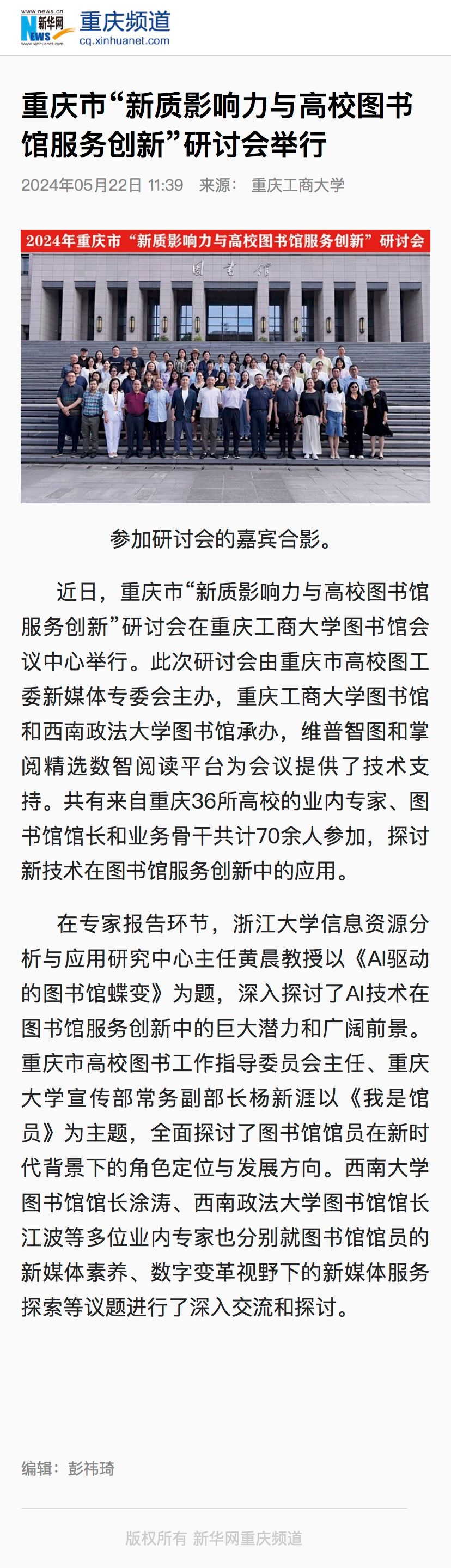 新华网报道KY开元图书馆举办“新质影响力与高校图书馆服务创新”研讨会