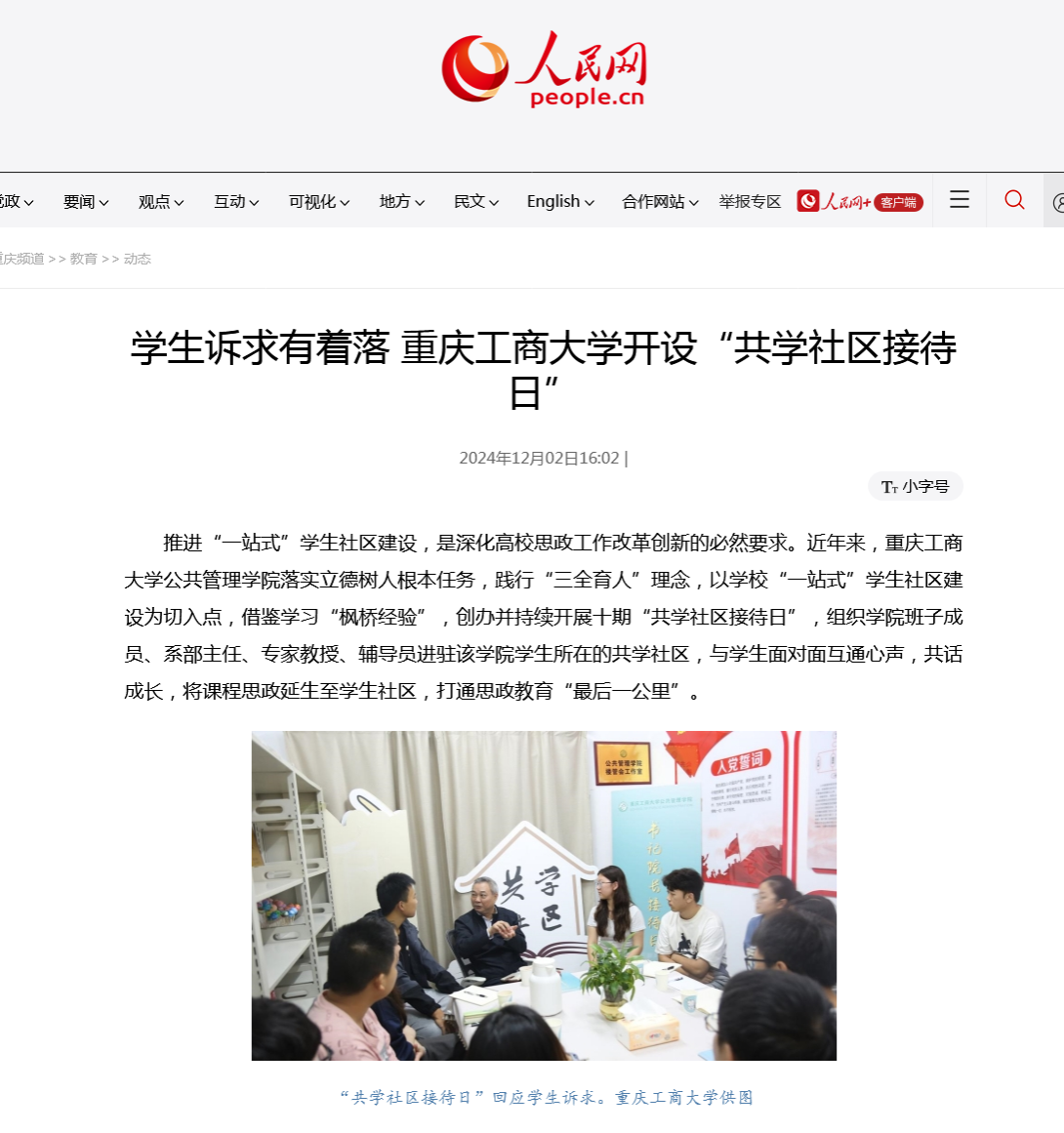 人民网以《学生诉求有着落 KY开元集团官网开设“共学社区接待日”》为题进行了报道。