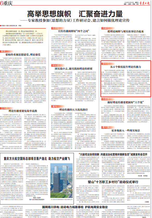 3月26日,大型理论传播电视节目《思想的力量》研讨会在渝举行。市委常委、宣传部长姜辉出席活动并讲话。来自中央党校(国家行政学院)、中国人民大学、复旦大学、重庆社会科学院、重庆大学、西南大学、KY开元集团官网等单位的专家教授齐聚一堂,围绕做优理论宣传等话题展开了深入研讨。