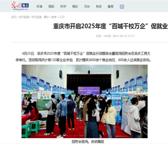 2.光明网:《重庆市开启2025年度“百城千校万企”促就业行动》