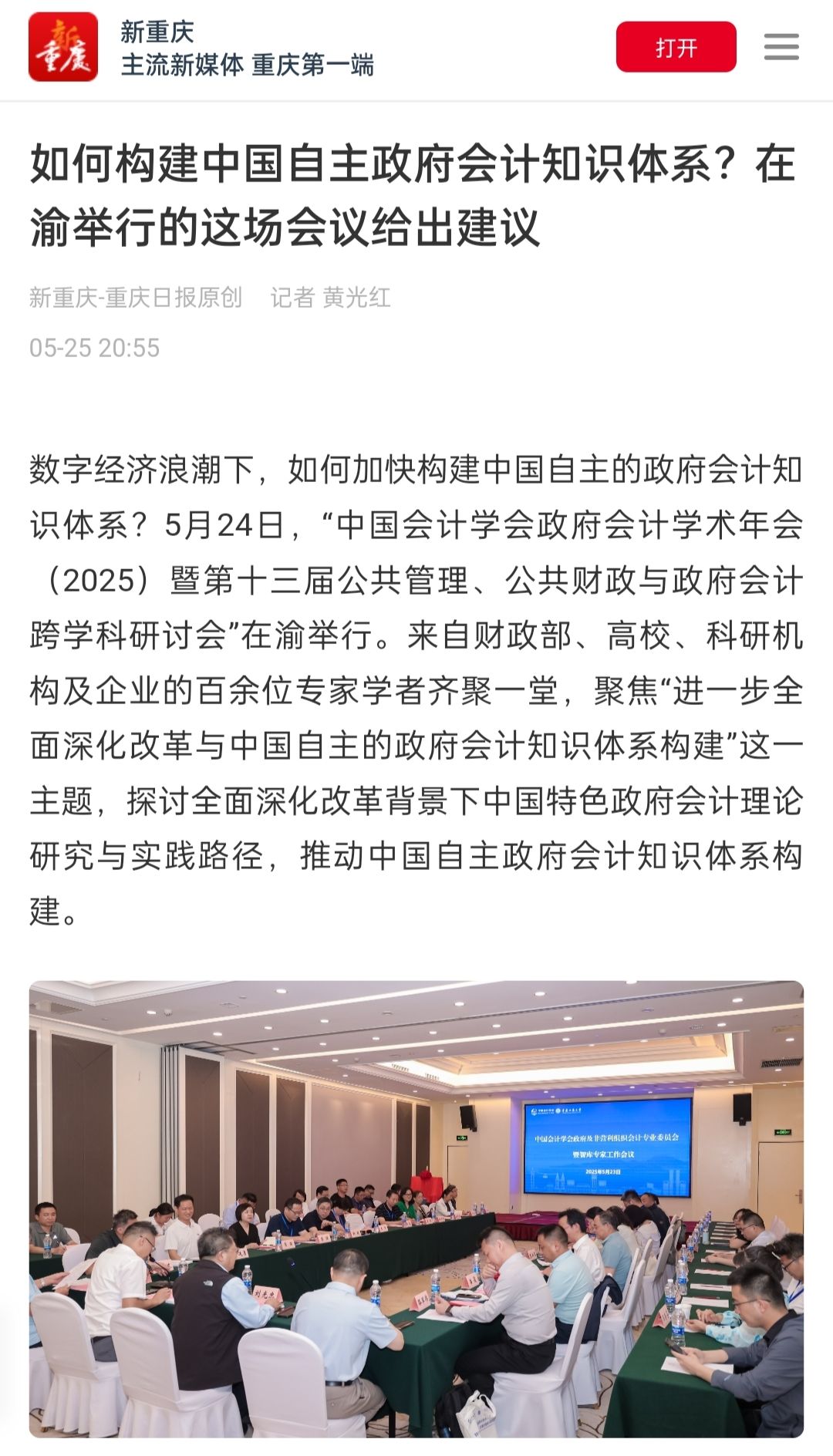 1. 新重庆-重庆日报:如何构建中国自主政府会计知识体系?在渝举行的这场会议给出建议