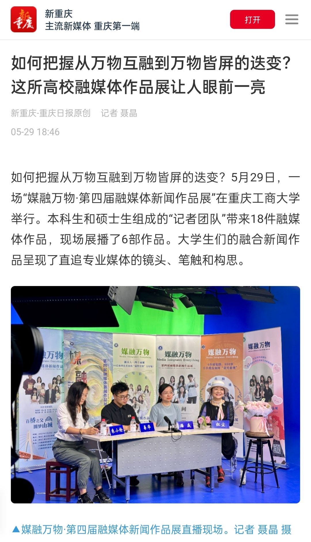 2.新重庆-重庆日报:如何把握从万物互融到万物皆屏的迭变?这所高校融媒体作品展让人眼前一亮