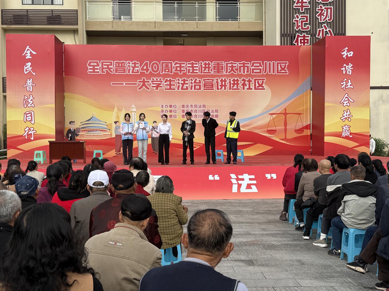 11月4日,受重庆市司法局邀请,法学与社会学学院“渝尚法·赋能强企”普法服务队走进重庆市合川区土场镇杨柳村,参加重庆市全民普法40周年走进重庆市合川区——大学生法治宣讲进社区活动。