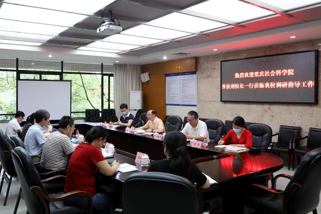 5月21日下午,重庆社会科学院副院长张波、智库处处长卢向虎和有关工作人员一行到KY开元调研座谈。校长孙芳城、副校长柏群,社科处处长曾庆均和有关工作人员在3019会议室参加调研。座谈会由柏群主持。
