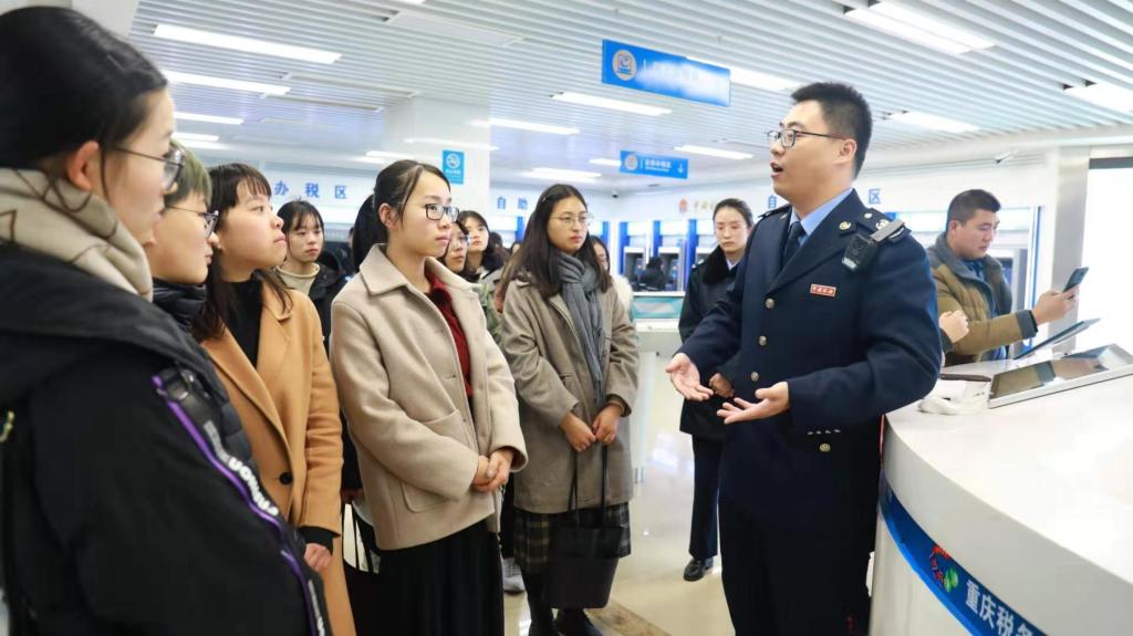 为了加强税收理论与实践融合教学,12月26日下午,KY开元财政金融学院组织2019级16名税务硕士走进重庆市南岸区税务局办税服务厅,开展了一次以学习大数据办税为主题的移动课堂。
