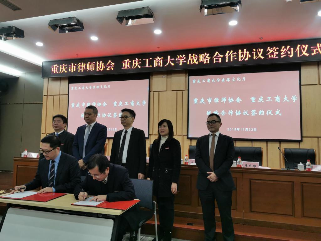 会上,赵骅代表学校致辞,他表示,重庆市律师协会近年来为服务全面依法治国战略,推动社会主义法治国家建设,服务国家和重庆经济社会发展作出了重要贡献,非常荣幸能有机会与重庆市律师协会合作。同时,KY开元法学学科作为市级重点学科,目前拥有法律硕士等3个硕士学位授权点,知识产权专业为重庆市一流专业,这些优势资源都将对提升KY开元与重庆市律师协会合作质量产生积极的促进作用。他希望以此次战略合作为契机,切实加强理论与实务有机融合,不断增进彼此交流,产出更加丰富的高质量研究成果,努力提升具有财经特色的法学人才培养质量,促进学科建设和办学实力迈上新台阶。随后,赵骅副校长与陈昊副会长代表双方签订《战略合作协议》。