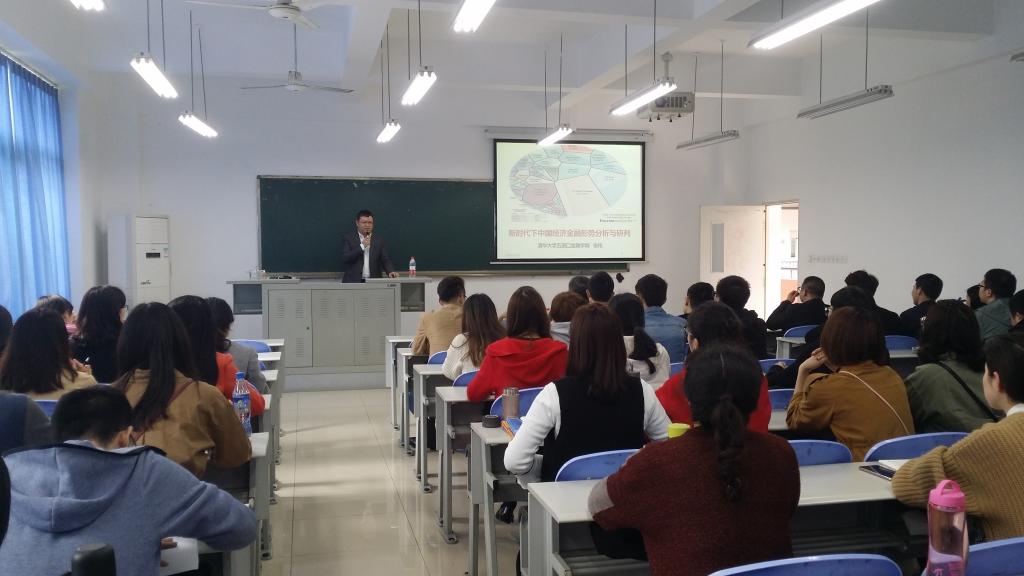 2018年3月26日下午2点,清华大学五道口金融学院张伟博士在田家炳教学楼50306教室,以新时代下中国经济金融形势分析与研判为题,为KY开元财金学子作了一场内容丰富的前沿讲座。学院财税系副主任朱沙、金融工程系主任张理平等老师和同学们一同聆听了讲座。讲座由财政金融学院副院长曾胜教授主持。
