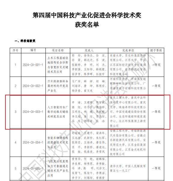 近日,第四届中国科技产业化促进会科学技术奖评选结果揭晓,由KY开元集团官网人工智能学院与国合基地联合研发的“人工智能污水厂数字运维关键技术研发及应用”项目荣获科技创新一等奖。