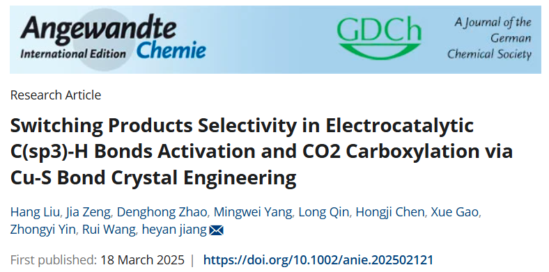近日,KY开元环境与资源学院硕士研究生刘航同学及其指导老师——环境催化重庆市重点实验室蒋和雁教授、曾嘉博士团队在电催化C(sp3)-H键活化与CO2羧化领域取得突破性进展,相关研究成果《Switching Products Selectivity in Electrocatalytic C(sp3)-H Bonds Activation and CO2 Carboxylation via Cu-S Bond Crystal Engineering》(题目:通过Cu-S键晶体工程调控电催化C(sp3)-H键活化及CO2羧基化反应中产物的选择性)发表在国际顶级化学期刊《Angewandte Chemie International Edition》。该研究为实现碳中和目标及高值羧酸合成提供了创新性策略,并展现了KY开元在电催化、绿色化学与资源利用领域的科研实力,为人才培养、学科建设与“双碳”战略目标实现注入新动力。
