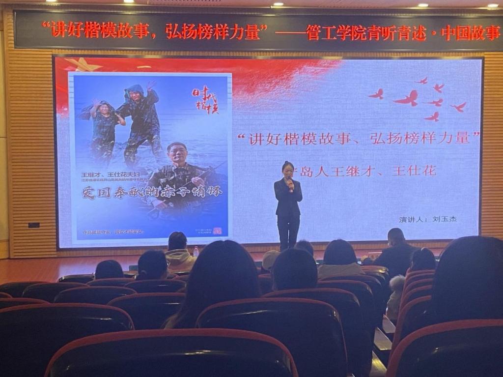 近日,管理科学与工程学院以“讲好楷模故事,弘扬榜样力量”为主题的第三期“青听青述-中国故事”共享讲坛在全院广泛开展。本次活动以朋辈交流楷模故事的方式在学院大学生中弘扬榜样力量,通过浸润式的学习,推进思政教育入脑、入心。