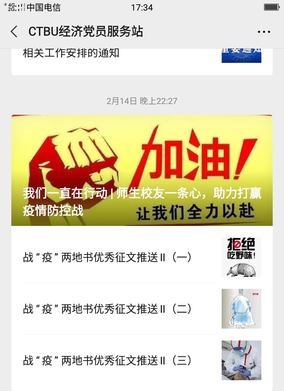 给“致战‘疫’中的中国”写信的管理学院刘娜同学写道:“我们亲爱的中国,感谢你的果断、不姑息和饱含深情,感谢你的辛苦付出,也请你继续带领你的儿女们坚持下去,继续加油,直到暖春的到来。”
