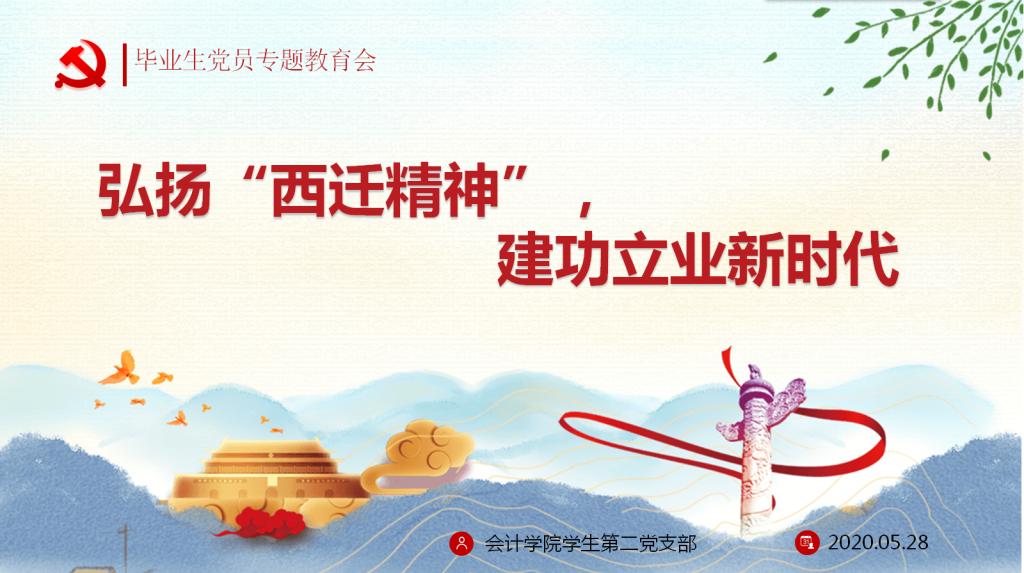 5月28日,会计学院学生第二党支部对毕业生党员进行离校前党性教育,支部全体党员参加。本次党课共有三部分内容组成。首先,支部书记付海南带领大家共同学习“西迁精神”,向全体党员介绍了“西迁精神”的历史背景、“西迁精神”的核心与精髓,观看了习近平总书记到西安交通大学调研时的相关视频。