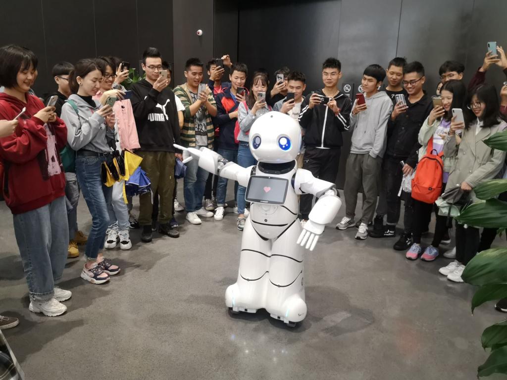 师生们在解说人员的指引下,先后参观了5G馆、艺趣馆、云尚体验中心。5G馆描绘5G将为日常生活带来的变化,展示了5G技术在通信、网络传输、智能化等领域的创新应用,包含5G手机体验、5G视频通话、VR驾驶、VR直播、沉浸式自行车等;艺趣馆以触摸未来为主题,以智慧娱乐为核心,14个互动体验项目构建数字艺术、数字文化、数字游戏等三大板块;云尚体验中心则是智慧体验园的招商接待中心,集展示体验、共享交流功能于一体,展示区围绕生态背景、功能布局、分区特色、智慧技术、建设计划等主题,通过智能机器人语音介绍,5G智能机械臂拆分、组合显示屏,多媒体水晶沙盘动画展示,多形式全方位演绎体验馆规划。