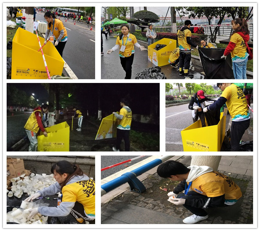 本次马拉松志愿者招募是受重马组委会委托,由校团委、体育学院联合开展,自3月起面向全校学生进行了招募和选拔。3月24日,在南岸校区图书馆剧场举行了志愿者专题培训。3月31日凌晨4时,所有志愿者整装待发,陆续前往南滨路42公里全程各个站点开始准备工作。本次服务的内容是全程赛道的垃圾清理,从凌晨4点到下午2点,志愿者们在工作人员的安排下,有序的开展。时间长,任务重,重工商大学子发扬不怕苦,不怕累的精神,坚持完成全部工作,充分发挥了KY开元学子的优秀品格。